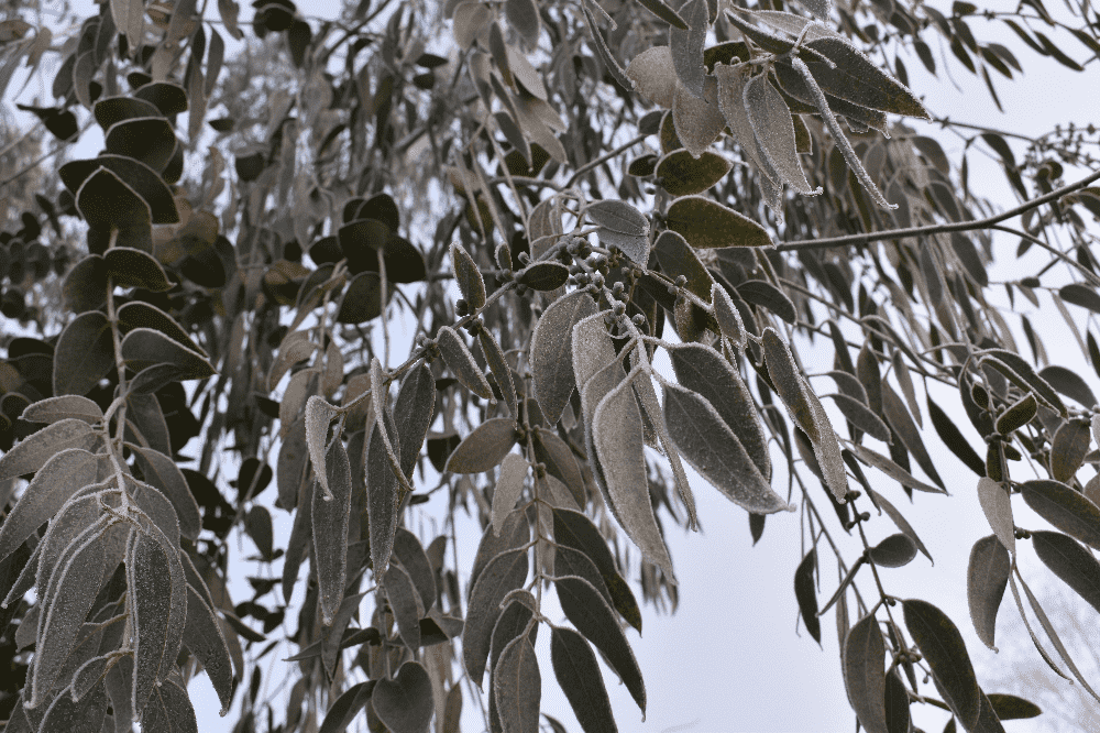 O vremenu, ki so ga naša drevesa deležna ni kaj dosti povedati. Precej tipično slovensko, vsaj za vinorodne lokacije. Pozimi je malo premrzlo, poleti pa malo prevroče. A evkalipti se ne pritožujejo. ‘Zver z vzhoda’, tisti val ekstremnega mraza, ki nas je zajel konec februarja pred nekaj leti, so preživeli stoično in brez žrtev. Če je zima mrzla in vetrovna pa se lahko zgodi, da jim osmodi liste, kar pa je problem večine zimzelenih rastlin. Tudi nekaterih iglavcev, ki so načeloma takšnih razmer bolj “vajeni”. Pred leti sem naletel na evkalipte na obali hrvaške istre, ki so utrpeli ožig listov zaradi hudega vetra in precej nizkih temperatur (za tisti konec!), a so bili s prihodom pomladi že kot novi.